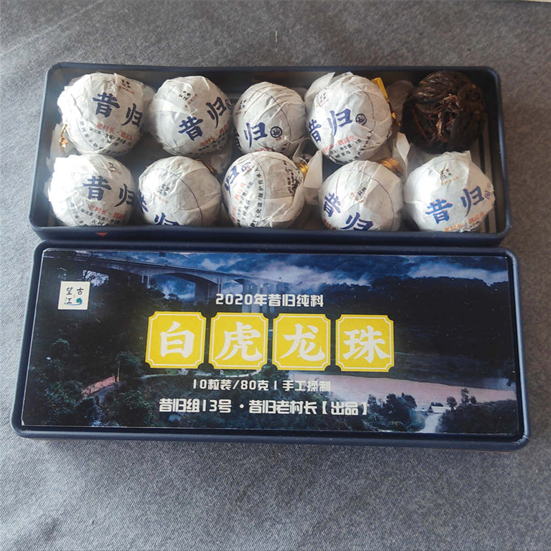 【白虎】昔归龙珠2020年普洱茶生茶8克每个紧压茶